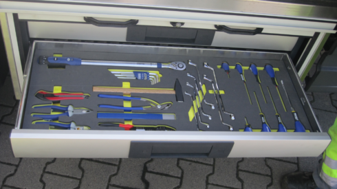 Viele unserer Einsatzfahrzeuge sind mit Werkzeug und Pannenhilfsequipment ausgerüstet, sodass direkt vor Ort vieles wieder repariert werden kann.
